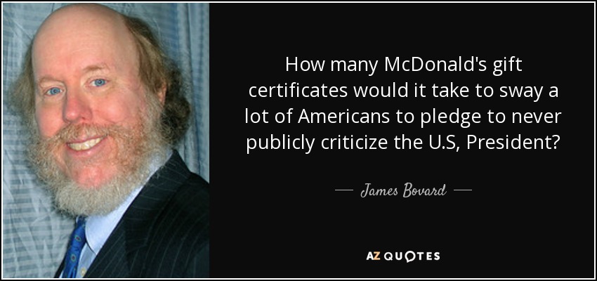 How many McDonald's gift certificates would it take to sway a lot of Americans to pledge to never publicly criticize the U.S, President?