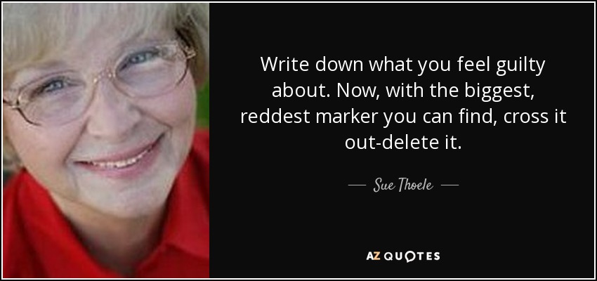 Write down what you feel guilty about. Now, with the biggest, reddest marker you can find, cross it out-delete it.