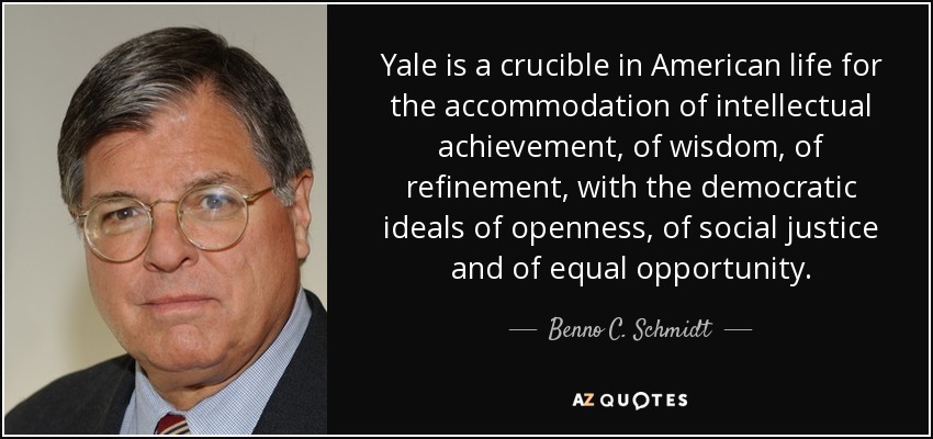 Yale is a crucible in American life for the accommodation of intellectual achievement, of wisdom, of refinement, with the democratic ideals of openness, of social justice and of equal opportunity.