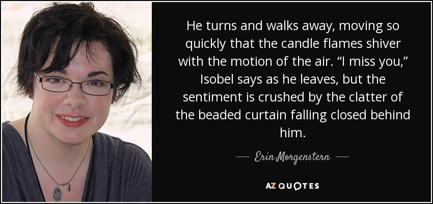 He turns and walks away, moving so quickly that the candle flames shiver with the motion of the air. “I miss you,” Isobel says as he leaves, but the sentiment is crushed by the clatter of the beaded curtain falling closed behind him.