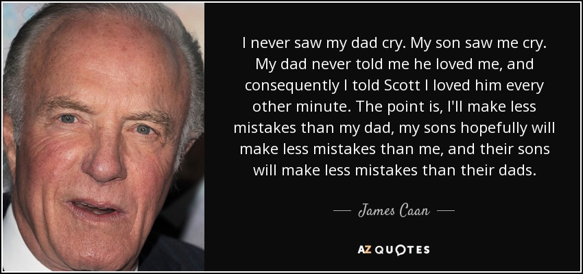 I never saw my dad cry. My son saw me cry. My dad never told me he loved me, and consequently I told Scott I loved him every other minute. The point is, I'll make less mistakes than my dad, my sons hopefully will make less mistakes than me, and their sons will make less mistakes than their dads.