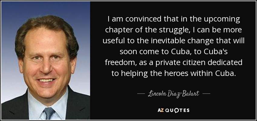 I am convinced that in the upcoming chapter of the struggle, I can be more useful to the inevitable change that will soon come to Cuba, to Cuba's freedom, as a private citizen dedicated to helping the heroes within Cuba.