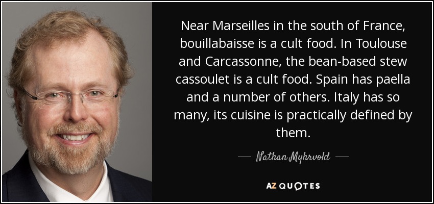 Near Marseilles in the south of France, bouillabaisse is a cult food. In Toulouse and Carcassonne, the bean-based stew cassoulet is a cult food. Spain has paella and a number of others. Italy has so many, its cuisine is practically defined by them.