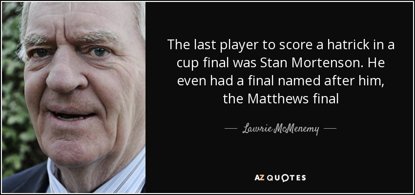 The last player to score a hatrick in a cup final was Stan Mortenson. He even had a final named after him, the Matthews final