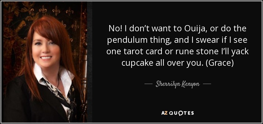 No! I don’t want to Ouija, or do the pendulum thing, and I swear if I see one tarot card or rune stone I’ll yack cupcake all over you. (Grace)