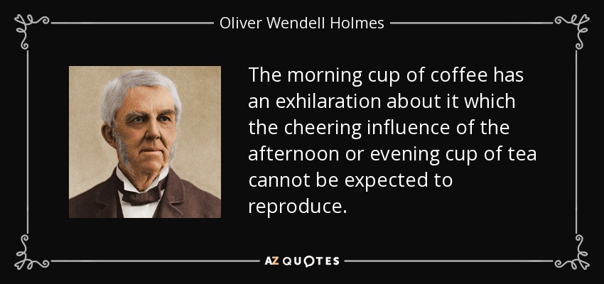 The morning cup of coffee has an exhilaration about it which the cheering influence of the afternoon or evening cup of tea cannot be expected to reproduce.