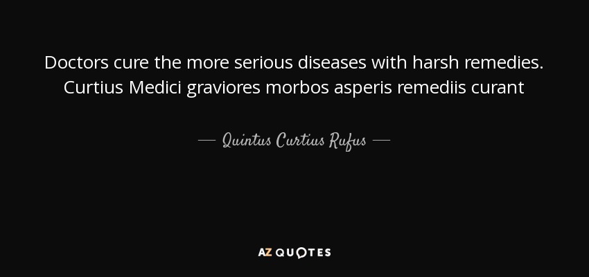 Doctors cure the more serious diseases with harsh remedies. Curtius Medici graviores morbos asperis remediis curant
