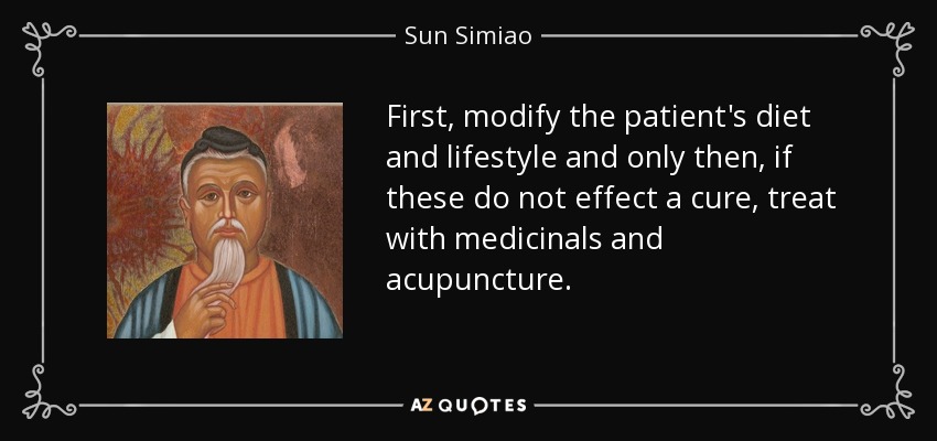First, modify the patient's diet and lifestyle and only then, if these do not effect a cure, treat with medicinals and acupuncture.