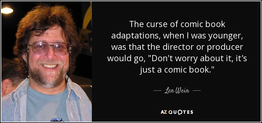 The curse of comic book adaptations, when I was younger, was that the director or producer would go, "Don't worry about it, it's just a comic book."
