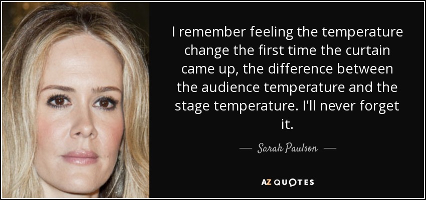 I remember feeling the temperature change the first time the curtain came up, the difference between the audience temperature and the stage temperature. I'll never forget it.
