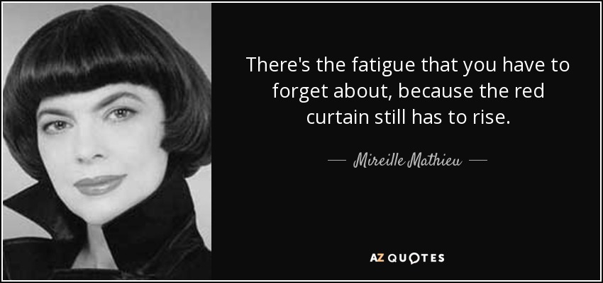 There's the fatigue that you have to forget about, because the red curtain still has to rise.