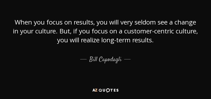 When you focus on results, you will very seldom see a change in your culture. But, if you focus on a customer-centric culture, you will realize long-term results.