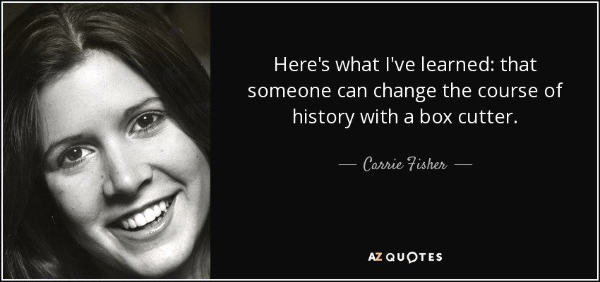 Here's what I've learned: that someone can change the course of history with a box cutter.