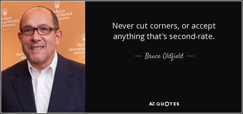 Never cut corners, or accept anything that's second-rate.
