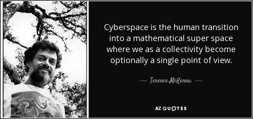 Cyberspace is the human transition into a mathematical super space where we as a collectivity become optionally a single point of view.