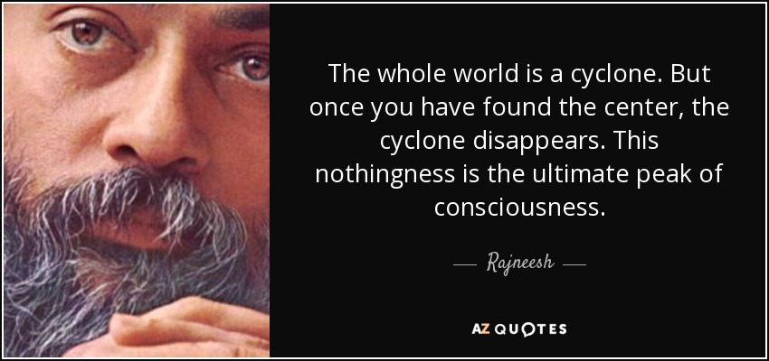 The whole world is a cyclone. But once you have found the center, the cyclone disappears. This nothingness is the ultimate peak of consciousness.