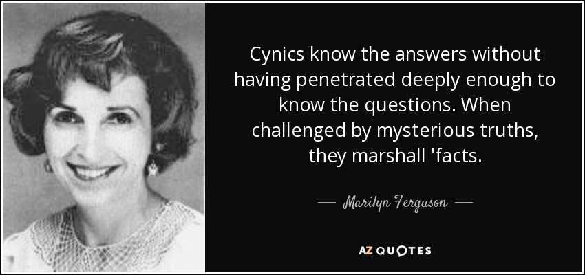 Cynics know the answers without having penetrated deeply enough to know the questions. When challenged by mysterious truths, they marshall 'facts.