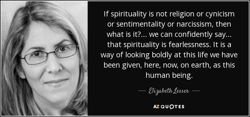 If spirituality is not religion or cynicism or sentimentality or narcissism, then what is it?... we can confidently say... that spirituality is fearlessness. It is a way of looking boldly at this life we have been given, here, now, on earth, as this human being.