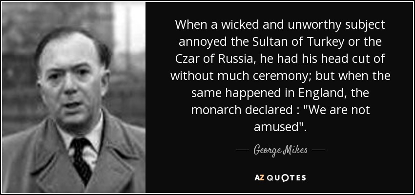 When a wicked and unworthy subject annoyed the Sultan of Turkey or the Czar of Russia, he had his head cut of without much ceremony; but when the same happened in England, the monarch declared : "We are not amused".