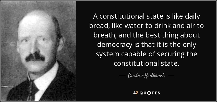 A constitutional state is like daily bread, like water to drink and air to breath, and the best thing about democracy is that it is the only system capable of securing the constitutional state.