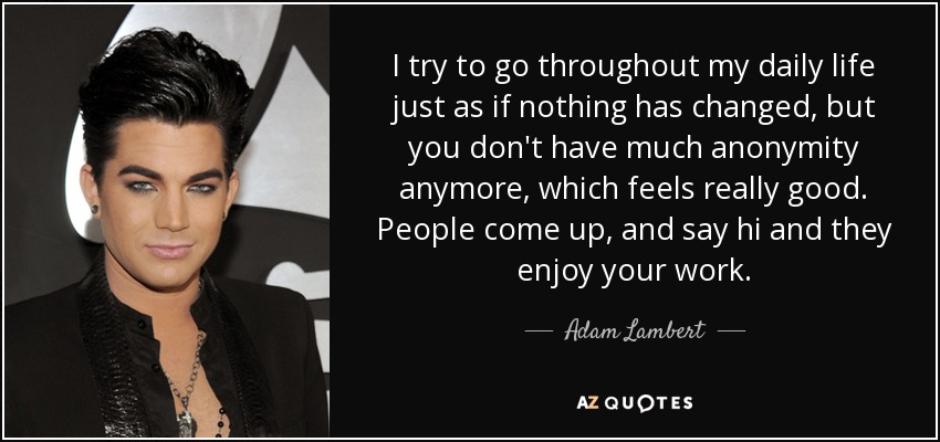 I try to go throughout my daily life just as if nothing has changed, but you don't have much anonymity anymore, which feels really good. People come up, and say hi and they enjoy your work.