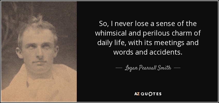 So, I never lose a sense of the whimsical and perilous charm of daily life, with its meetings and words and accidents.