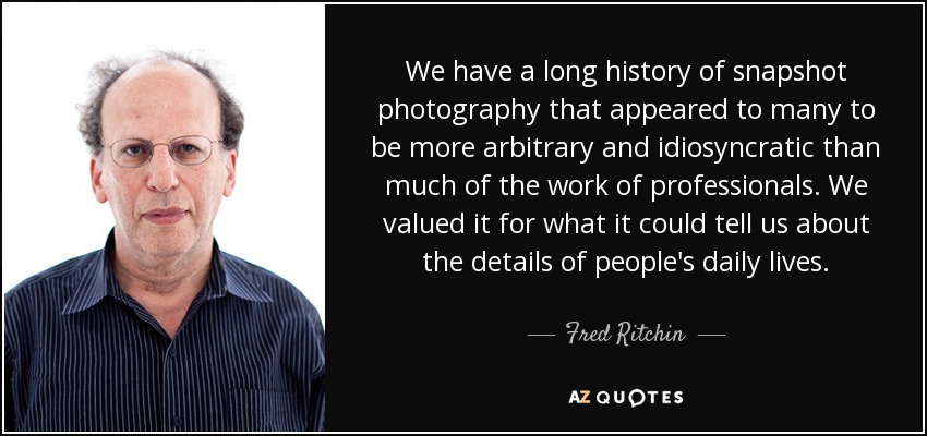 We have a long history of snapshot photography that appeared to many to be more arbitrary and idiosyncratic than much of the work of professionals. We valued it for what it could tell us about the details of people's daily lives.