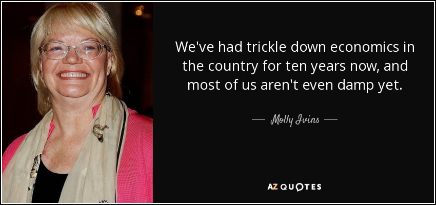 We've had trickle down economics in the country for ten years now, and most of us aren't even damp yet.