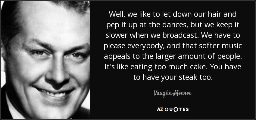 Well, we like to let down our hair and pep it up at the dances, but we keep it slower when we broadcast. We have to please everybody, and that softer music appeals to the larger amount of people. It's like eating too much cake. You have to have your steak too.