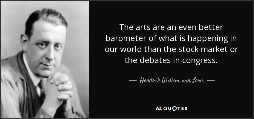 The arts are an even better barometer of what is happening in our world than the stock market or the debates in congress.
