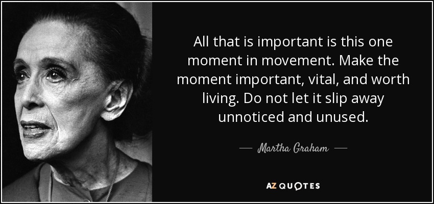 All that is important is this one moment in movement. Make the moment important, vital, and worth living. Do not let it slip away unnoticed and unused.