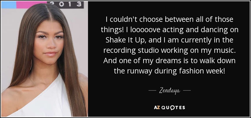 I couldn't choose between all of those things! I looooove acting and dancing on Shake It Up, and I am currently in the recording studio working on my music. And one of my dreams is to walk down the runway during fashion week!