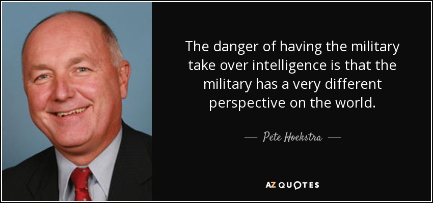 The danger of having the military take over intelligence is that the military has a very different perspective on the world.
