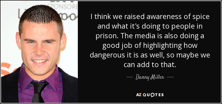 I think we raised awareness of spice and what it's doing to people in prison. The media is also doing a good job of highlighting how dangerous it is as well, so maybe we can add to that.
