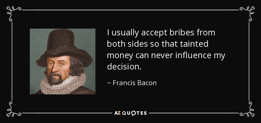 I usually accept bribes from both sides so that tainted money can never influence my decision.