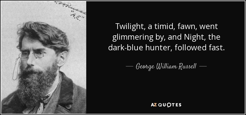 Twilight, a timid, fawn, went glimmering by, and Night, the dark-blue hunter, followed fast.