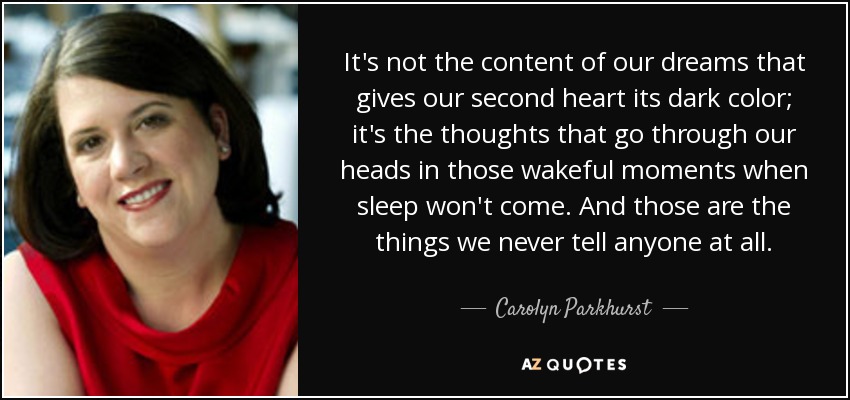 It's not the content of our dreams that gives our second heart its dark color; it's the thoughts that go through our heads in those wakeful moments when sleep won't come. And those are the things we never tell anyone at all.
