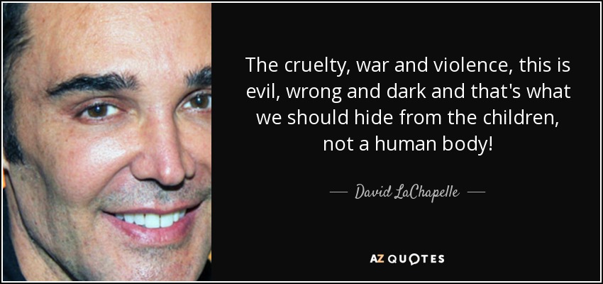 The cruelty, war and violence, this is evil, wrong and dark and that's what we should hide from the children, not a human body!