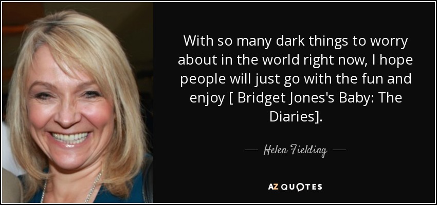 With so many dark things to worry about in the world right now, I hope people will just go with the fun and enjoy [ Bridget Jones's Baby: The Diaries].