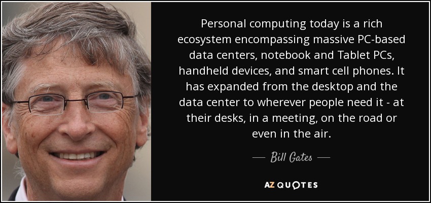 Personal computing today is a rich ecosystem encompassing massive PC-based data centers, notebook and Tablet PCs, handheld devices, and smart cell phones. It has expanded from the desktop and the data center to wherever people need it - at their desks, in a meeting, on the road or even in the air.