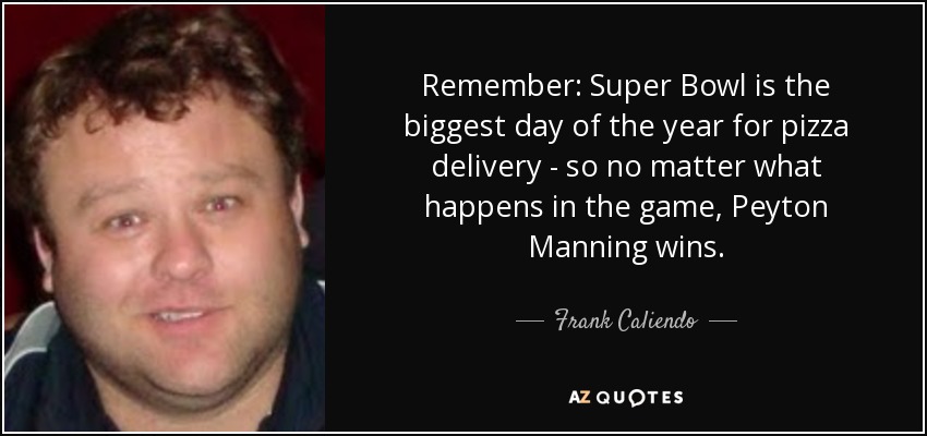 Remember: Super Bowl is the biggest day of the year for pizza delivery - so no matter what happens in the game, Peyton Manning wins.