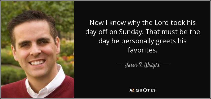 Now I know why the Lord took his day off on Sunday. That must be the day he personally greets his favorites.