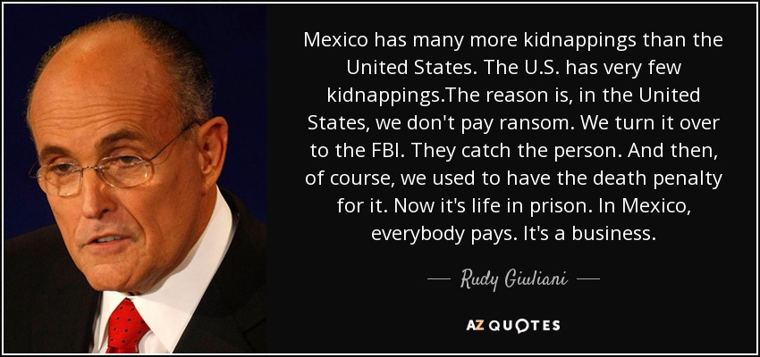 Mexico has many more kidnappings than the United States. The U.S. has very few kidnappings.The reason is, in the United States, we don't pay ransom. We turn it over to the FBI. They catch the person. And then, of course, we used to have the death penalty for it. Now it's life in prison. In Mexico, everybody pays. It's a business.