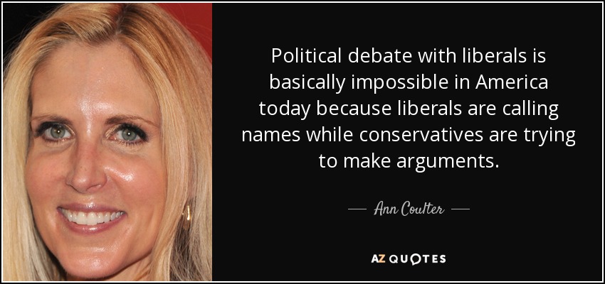 Political debate with liberals is basically impossible in America today because liberals are calling names while conservatives are trying to make arguments.