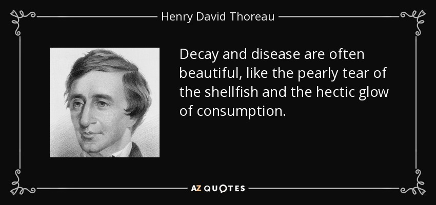 Decay and disease are often beautiful, like the pearly tear of the shellfish and the hectic glow of consumption.