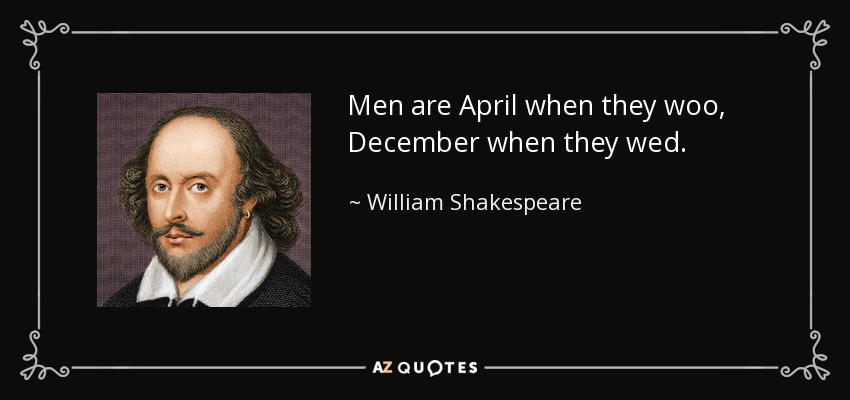 Men are April when they woo, December when they wed. Maids are May when they are maids, but the sky changes when they are wives.