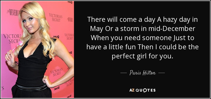 There will come a day A hazy day in May Or a storm in mid-December When you need someone Just to have a little fun Then I could be the perfect girl for you.