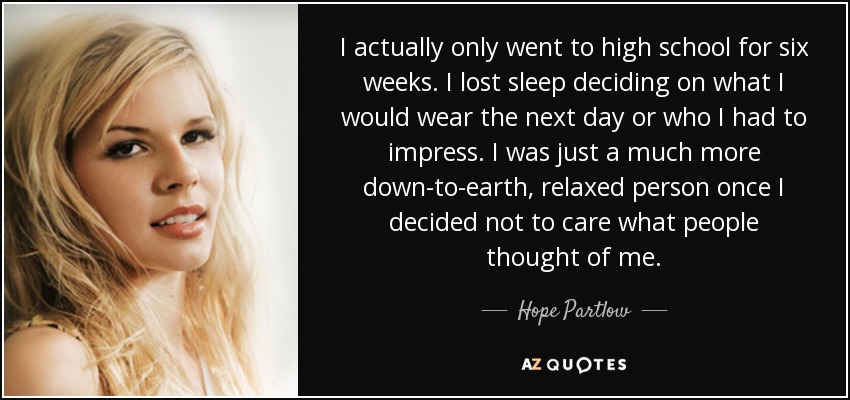 I actually only went to high school for six weeks. I lost sleep deciding on what I would wear the next day or who I had to impress. I was just a much more down-to-earth, relaxed person once I decided not to care what people thought of me.