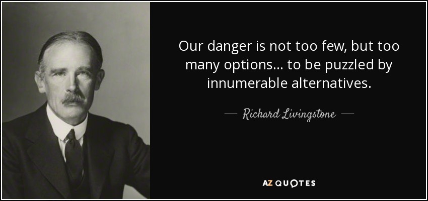 Our danger is not too few, but too many options ... to be puzzled by innumerable alternatives.
