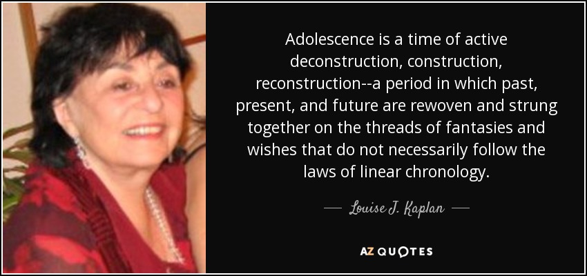Adolescence is a time of active deconstruction, construction, reconstruction--a period in which past, present, and future are rewoven and strung together on the threads of fantasies and wishes that do not necessarily follow the laws of linear chronology.
